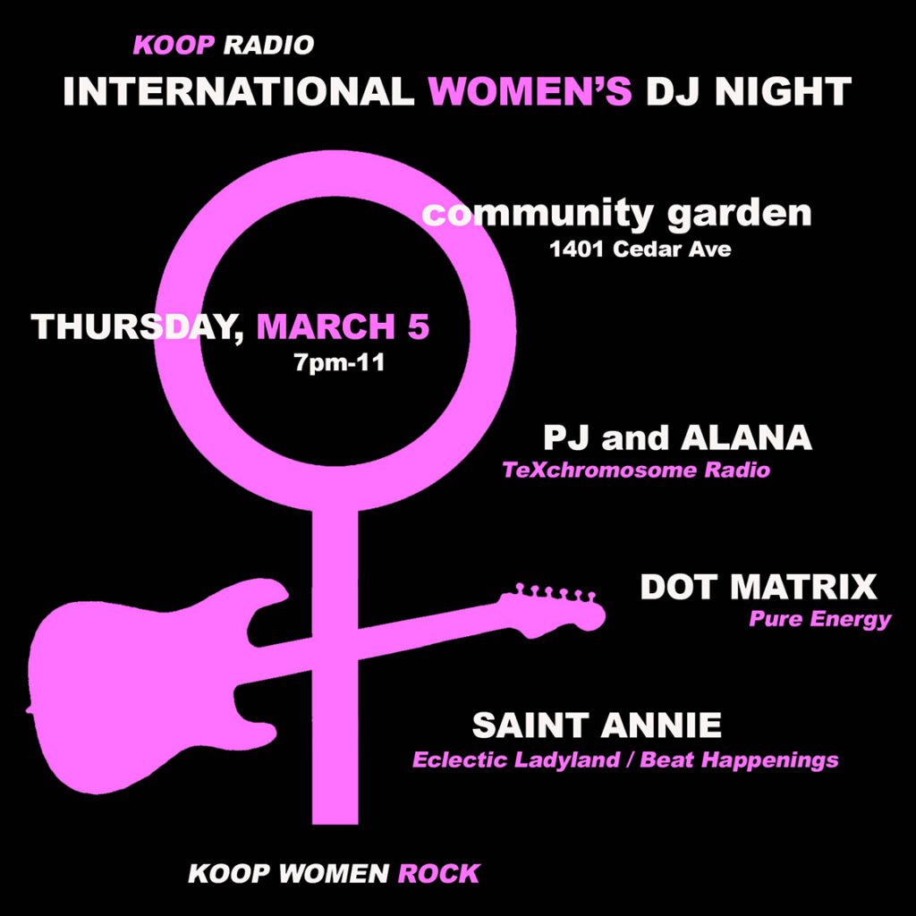 On this this week’s Stronger Than Dirt (Saturday, March 7, 8-10pm) Scott will be celebrating International Women’s Day with an episode showcasing all female artists and female voiced bands. Some featured