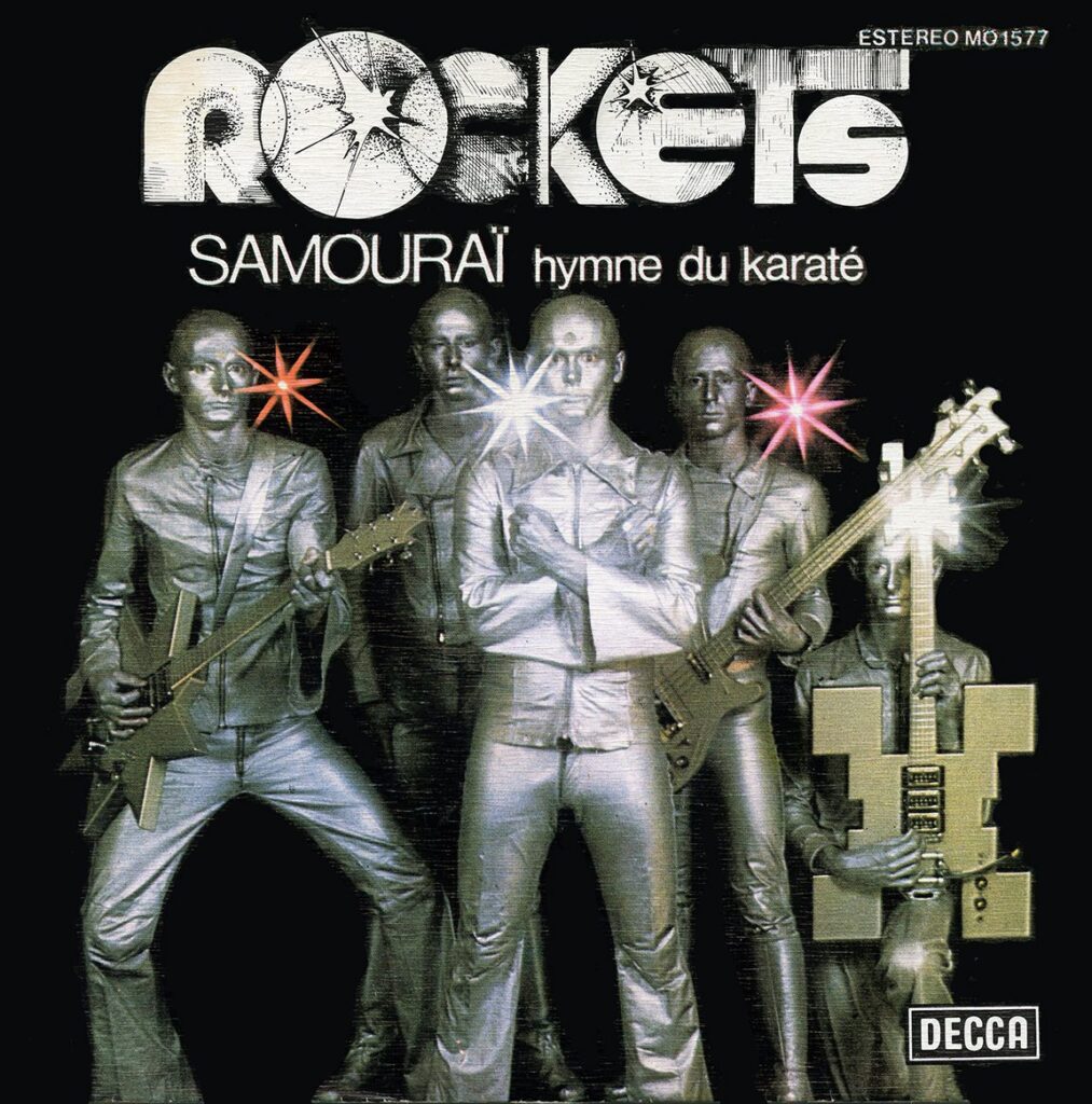PICTURE SLEEVE OF THE WEEK: This week’s pic sleeve could only come from one decade, the 70s. The Rockets were a French band of the 70s and 80s that mixed space rock, glam, and disco. They performed on stage as bald aliens, wearing space suits and painted in silver. The “Samouraï Hymne Du Karaté” single was their first release, and appeared in 1976 on Decca. This is a Spanish pressing.