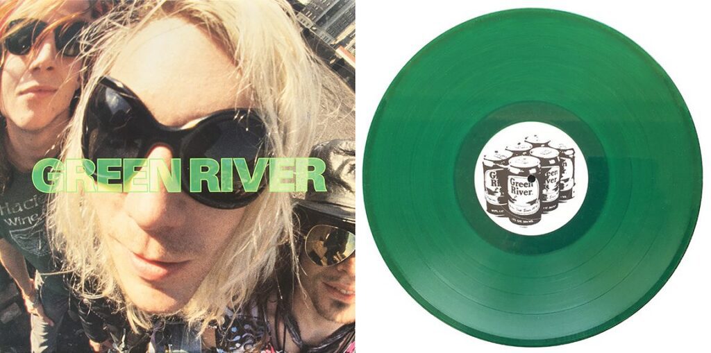 COVER ART OF THE WEEK: Green River, a Seattle based rock band, pioneered the early grunge sound, and included members who would go on to form Mudhoney and Pearl Jam among other bands. Recorded in 1987, “Rehab Doll” was released in June of 1988 on Sub Pop (Glitterhouse in Europe), several months after the group had disbanded. It featured a jacket design by Linda Owens and photography by Charles Peterson. An inner sleeve featured a design by Jeff Ament. The first thousand copies were pressed on clear green vinyl. Click on image to enlarge.