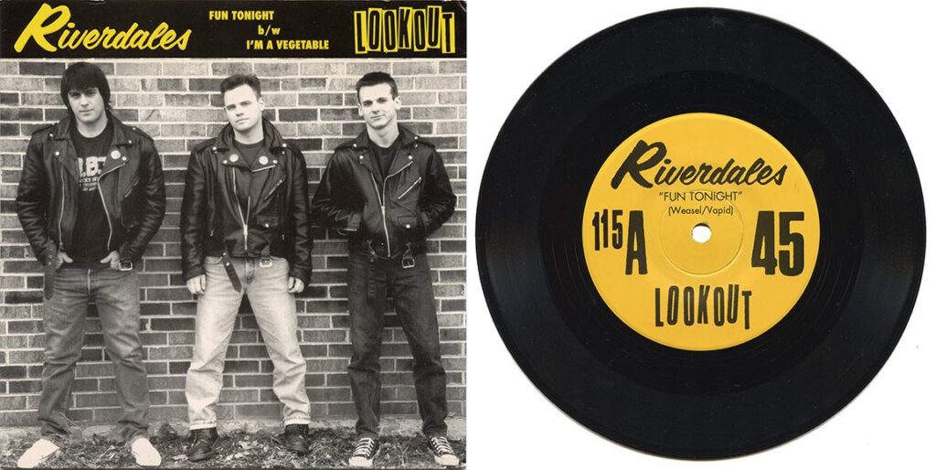 DUSTY DIAMOND OF THE WEEK (a forgotten gem from the STD vaults): The Riverdales were a Chicago based Ramones influenced punk band comprised of three members of Screeching Weasel. Formed in 1994 they broke up in 1997, reformed again in the 00s before disbanding again in 2011. “Fun Tonight” is a complete party punker with a catchy melody, buzzsaw guitar riffs, capped off by a manic faux radio voice recitation by Boris the Sprinkler’s Norb Rozek (AKA Reverend Norb). It appeared in 1995 on a single as well as a self-titled album, both on Lookout! Records. Listen to it here:
