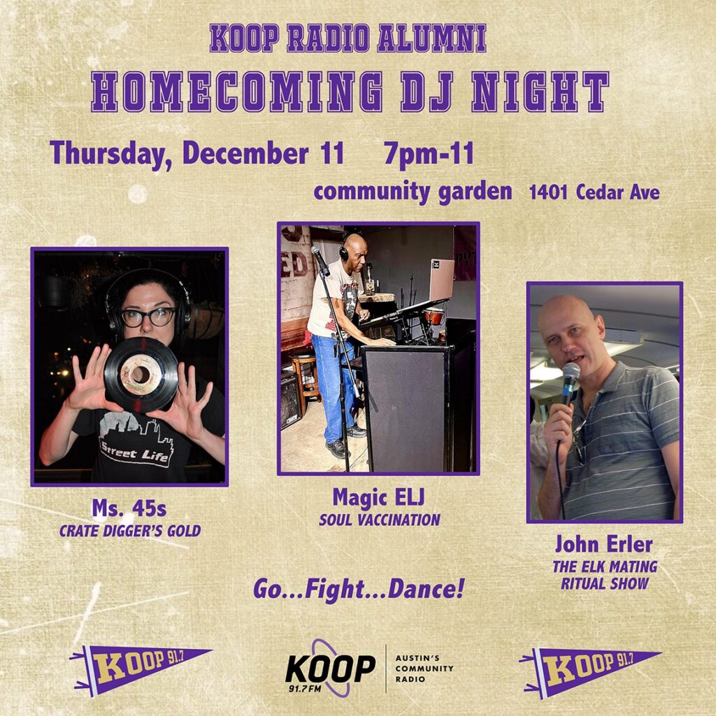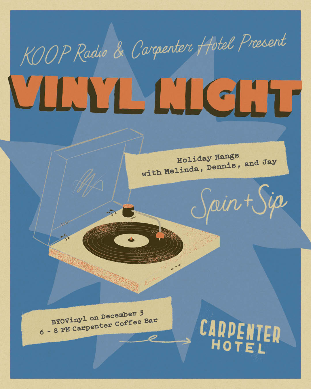 The end of the year may be near, but we aren't done spinning with you just yet. Join us one last time this year at The Carpenter Hotel for a night of holiday hangs and tunes with KOOP DJs Jay Robillard (The Lounge Show), Dennis Campa (Adventures In Sound) and Melinda Bee (The Africa Express). […]