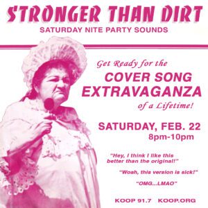 The show has been on the air since December 1994, when KOOP first hit the airwaves. Originally it was called the Garage Show and focused mainly on garage/punk music from the 60s through the 90s. Two years later the name of the show was changed to Stronger Than Dirt though the focus remained by and large garage and punk. Over the years the show has evolved to embrace a wider spectrum of “rock,” including psychedelic, glam, power pop, new wave, post punk, etc. What hasn’t changed is its Saturday night party vibe.
